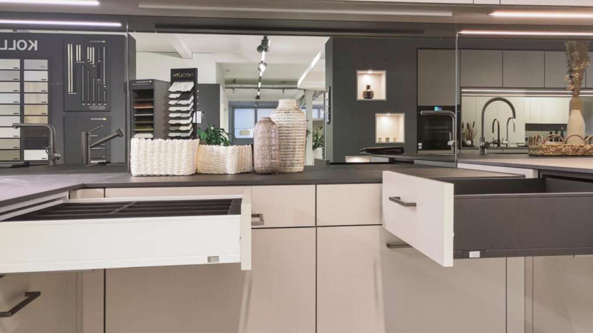 Für Dössegger liegt einer der grössten Vorteile beim AK+85 in der obersten Schubladenzeile. So kann hier standardmässig eine K-Zarge der Legrabox von Blum verbaut werden beziehungsweise eine M-Zarge unter dem Kochfeld. So finden beispielsweise Gewürze oder auch Teetassen aufrecht Platz in der obersten Schublade.