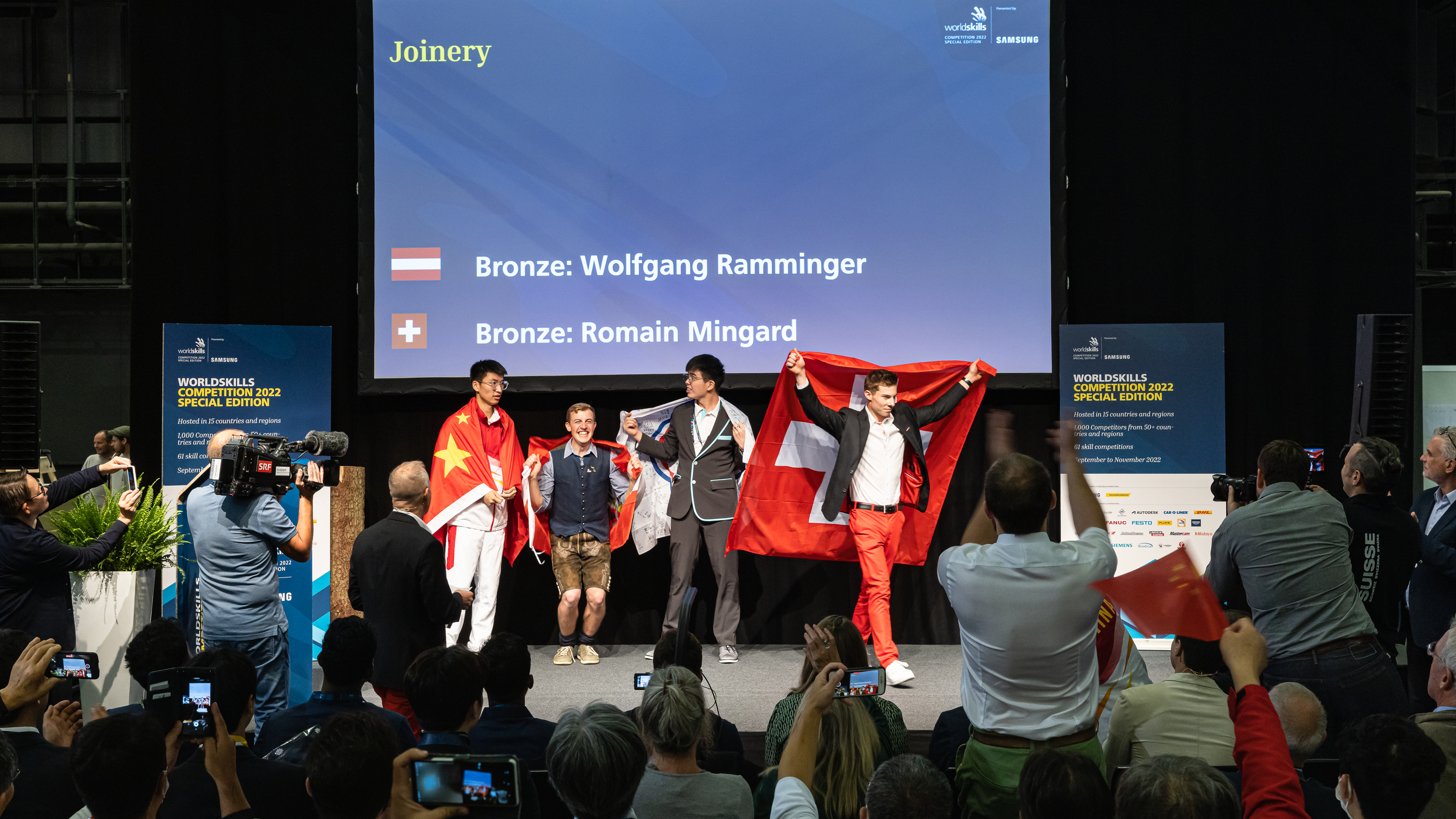 Neben dem hochkarätigen Ausstellerangebot rund um Maschinen, Werkzeuge, Rohstoffe, Halbfabrikate, Materialien, Softwarelösungen sowie Zubehör erwartete das Fachpublikum auch jede Menge Action vor Ort: Die Holz war Austragungsort dreier Disziplinen der Berufsweltmeisterschaften (WorldSkills Competition 2022 Special Edition). Vier Tage lang kämpften über 40 Teilnehmer aus 27 Nationen unter hervorragenden Bedingungen live in der Halle um die Weltmeistertitel der Möbel- und der Bauschreiner sowie der Zimmerleute – jederzeit unter Beobachtung der Wettkampfexperten und Besuchenden. Besonders erfreulich: Die Schweiz war gleich mit drei Teilnehmern vertreten. Am letzten Messetag wurden dann unter grossem Applaus und Jubel die Sieger verkündet: Bei den Bauschreinern holten sich Rupeng Shao aus China und Shih-Kai Chen aus Chinesisch Taipeh gemeinsam die Goldmedaille. Der Schweizer Romain Mingard durfte sich über Bronze freuen. Bei den Möbelschreinern gab es gleich drei Goldmedaillen: Suil Kwon aus Südkorea, Dexin Li aus China sowie James Boyes aus Grossbritannien teilen sich den ersten Podestplatz. Jaeho Song aus Südkorea konnte den begehrten Weltmeistertitel bei den Zimmerleuten nach Hause holen.