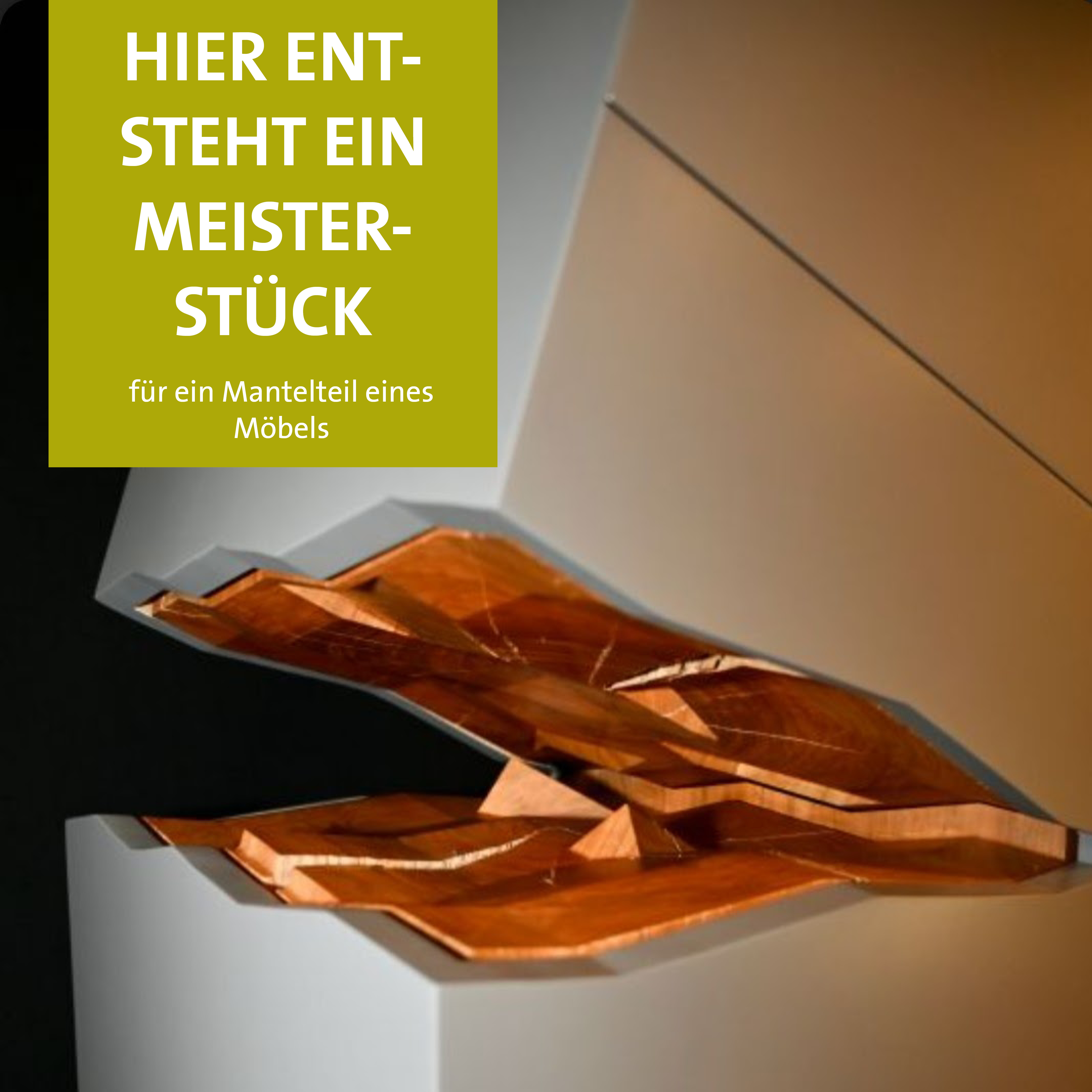 Hier entsteht ein Meisterstück – beim Werkstück von Florian Peter für den Schreiner Nachwuchsstar 2022 handelt es sich um ein Mantelteil seines Möbels. Alles über das Werkstück und Florian Peter erfahren Sie in den Bildern.