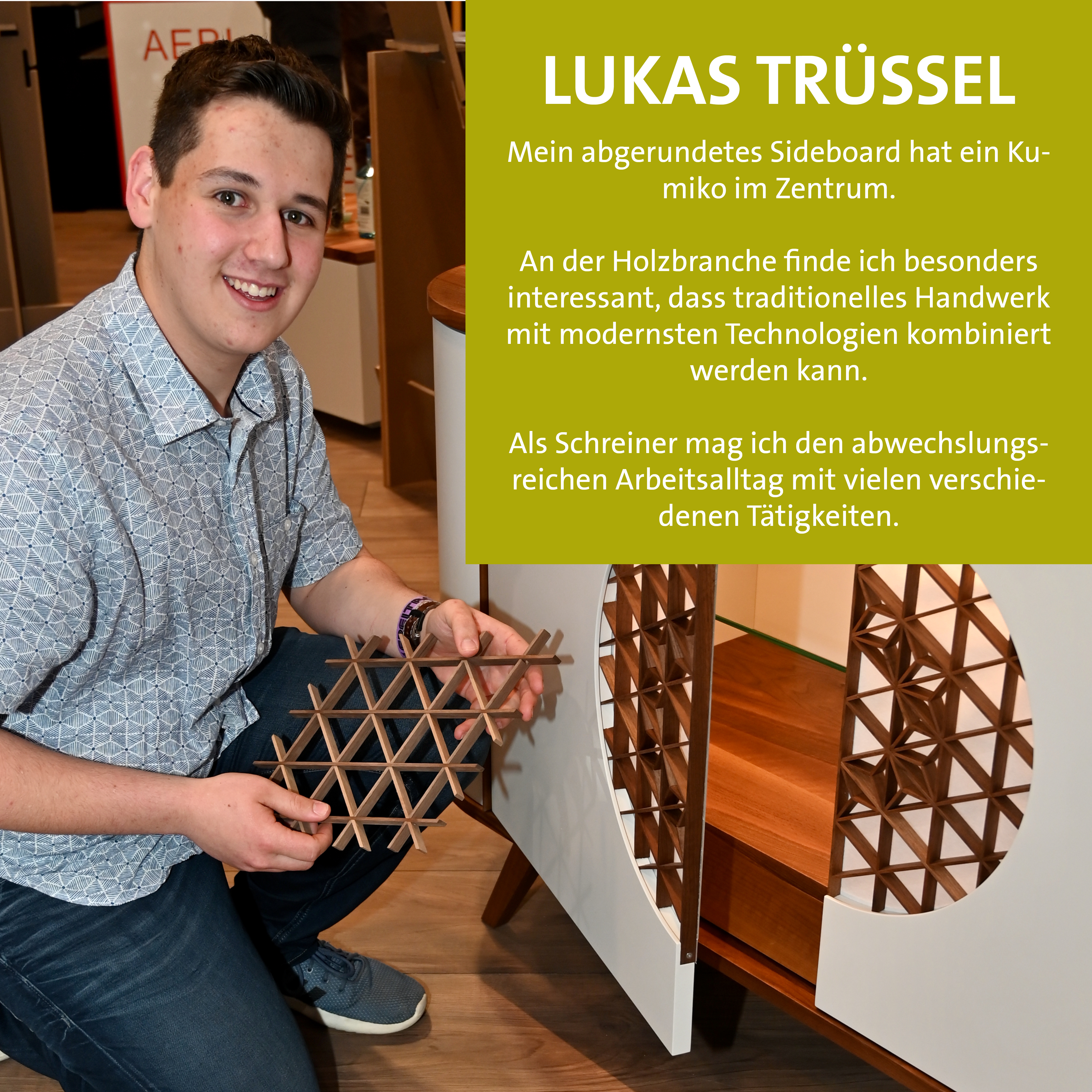 Der VSSM Schreiner Nachwuchsstar gehört zu den festen Bestandteilen der Holz. Auch in diesem Jahr zeigen die angehenden Schreiner und Schreinerinnen, was sie können! Vom 11. bis 15. Oktober können Sie die Werke live in Halle 1.1 bestaunen. Entdecken Sie das Werkstück von Lukas Trüssel.