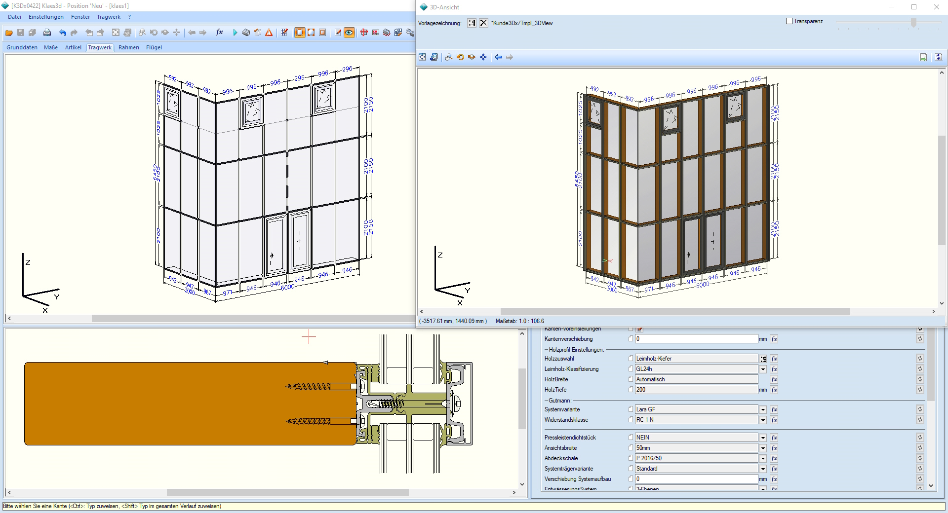Querschnitte werden automatisch mit Bemaßung erstellt und Ihr Projekt wird detailliert kalkuliert. Und wenn kurzfristig etwas geändert werden muss? Kein Problem! Ändern Sie einfach und erleben Sie, wie die Klaes 3D per Mausklick vollautomatisch alle Änderungen berechnet und darstellt.