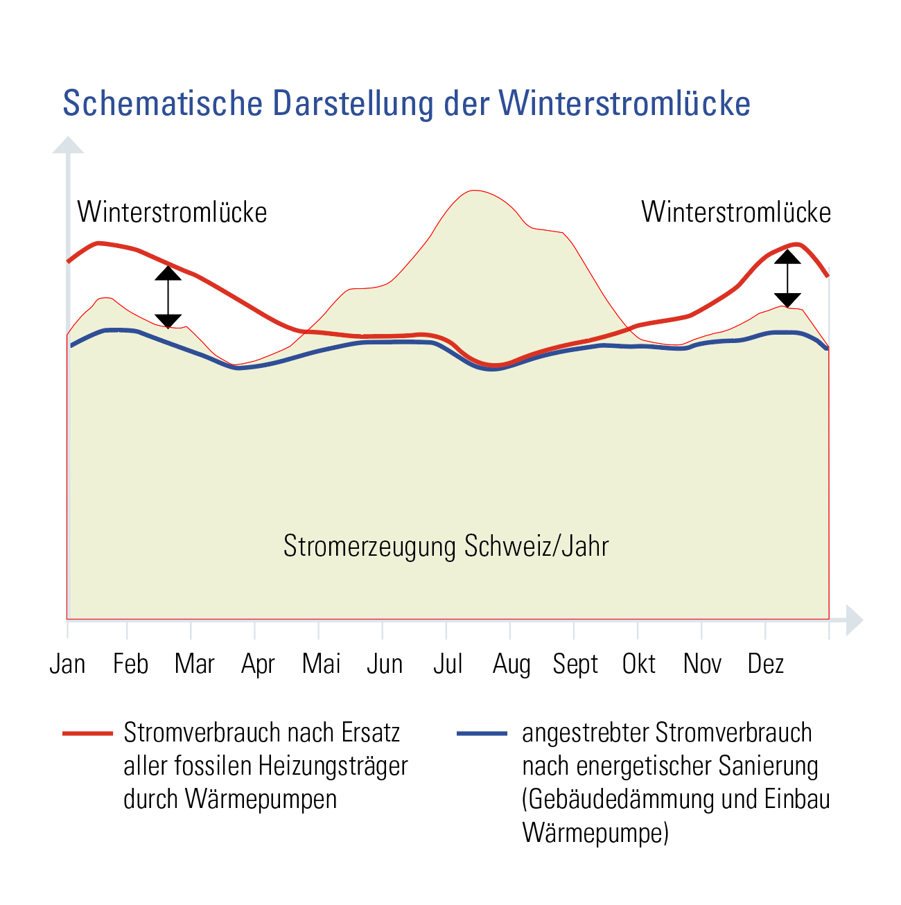 Heute geht man davon aus, dass künftig rund 6 TWh an Winterstrom fehlen werden. Anstelle teurer Stromimporte oder Notmassnahmen wie Kontingentierung bietet die Sanierung der Gebäudehülle eine einfache Lösung mit hohem Nutzen. Neben der Energieeinsparung steigt der Wohnkomfort, während die Heizkosten sinken.