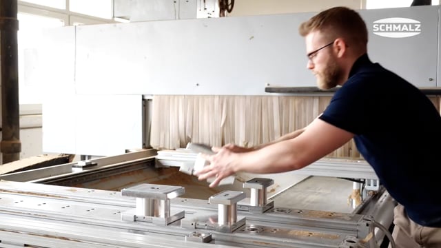 Ob dünne und empfindliche Bauteile oder schweres Massivholz mit rauen Oberflächen – der neue Blocksauger VCBL-HD von Schmalz spannt alles sicher, während die CNC-Maschine ihre exakten Formen fräst. Damit spart der VCBL-HD zeitaufwändige Rüstvorgänge und beschleunigt die Holzbearbeitung.