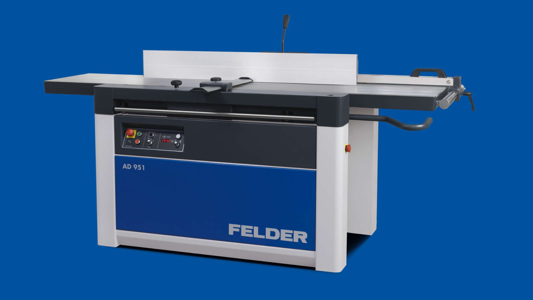 Die AD 951 Hobel-Dickenhobelmaschine erzielt exzellente Hobelergebnisse, während hervorragenden Bedienkomfort bietet. Massiv verrippte Abrichttische und eine 4-Säulen Dickentischführung sorgen für höchste Stabilität. Das formschlüssige Abrichttisch-Verstellsystem, 120 mm Messerflugkreis und die patentierte Felder Systemhobelwelle garantieren exakteste Ergebnisse. Ein intuitives Bedienkonzept reduziert Umrüstarbeiten auf wenige Handgriffe und macht die AD 951 zu einer Maschine der Spitzenklasse.