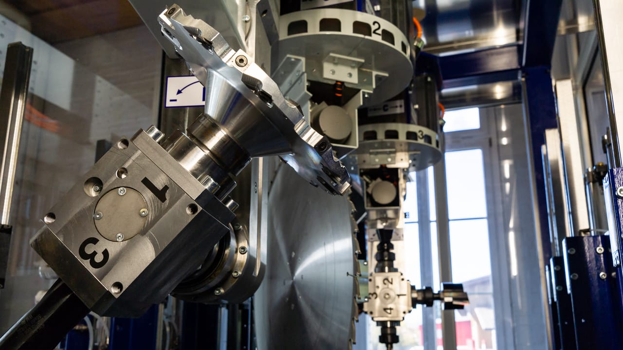 • Entre autres, la machine à grande vitesse, qui augmente la vitesse de rotation des outils d'usinage utilisés afin de pouvoir les utiliser plus efficacement. Un équipement ultérieur peut être réalisé à tout moment sur un groupe de 4 têtes de broche existant.