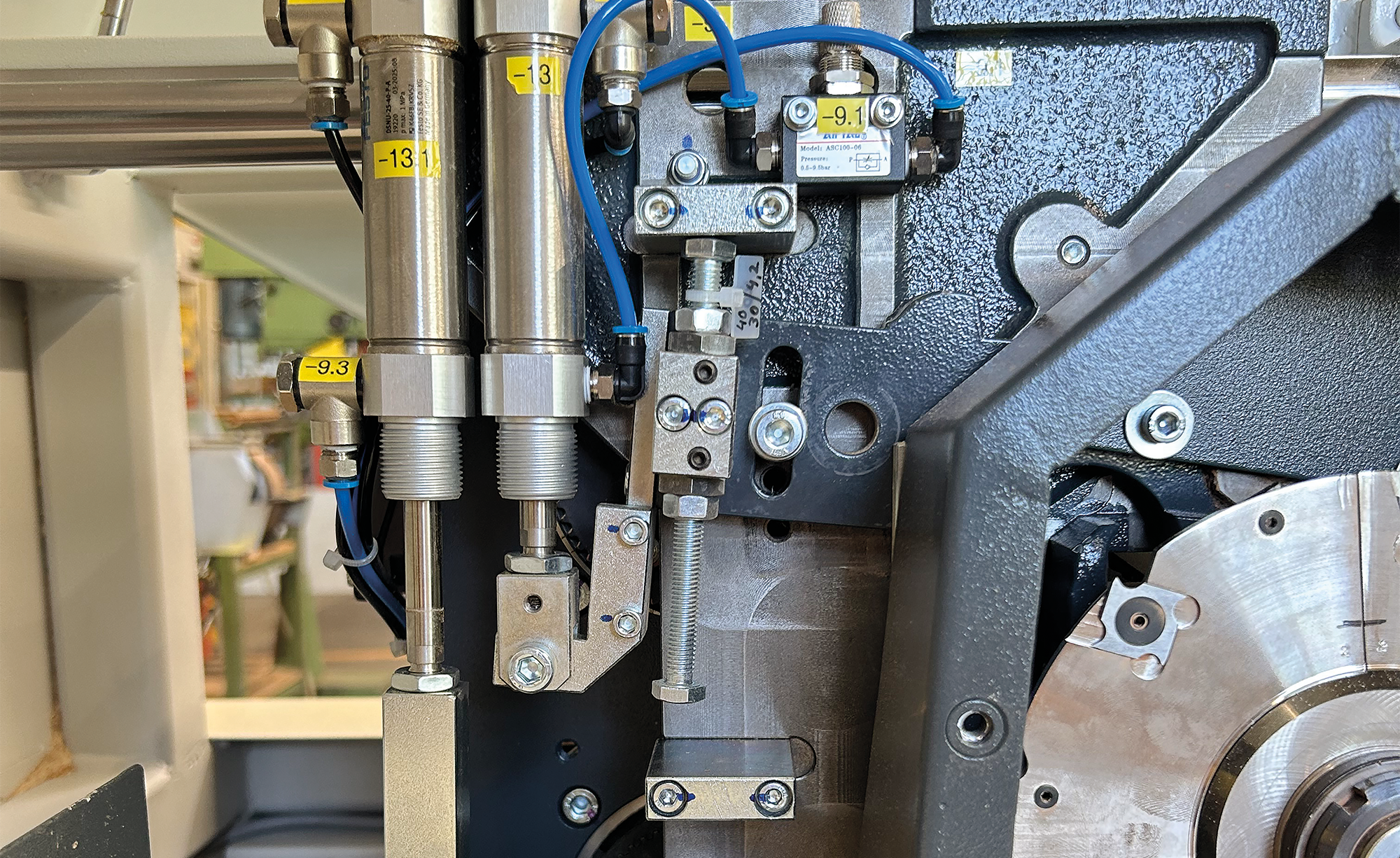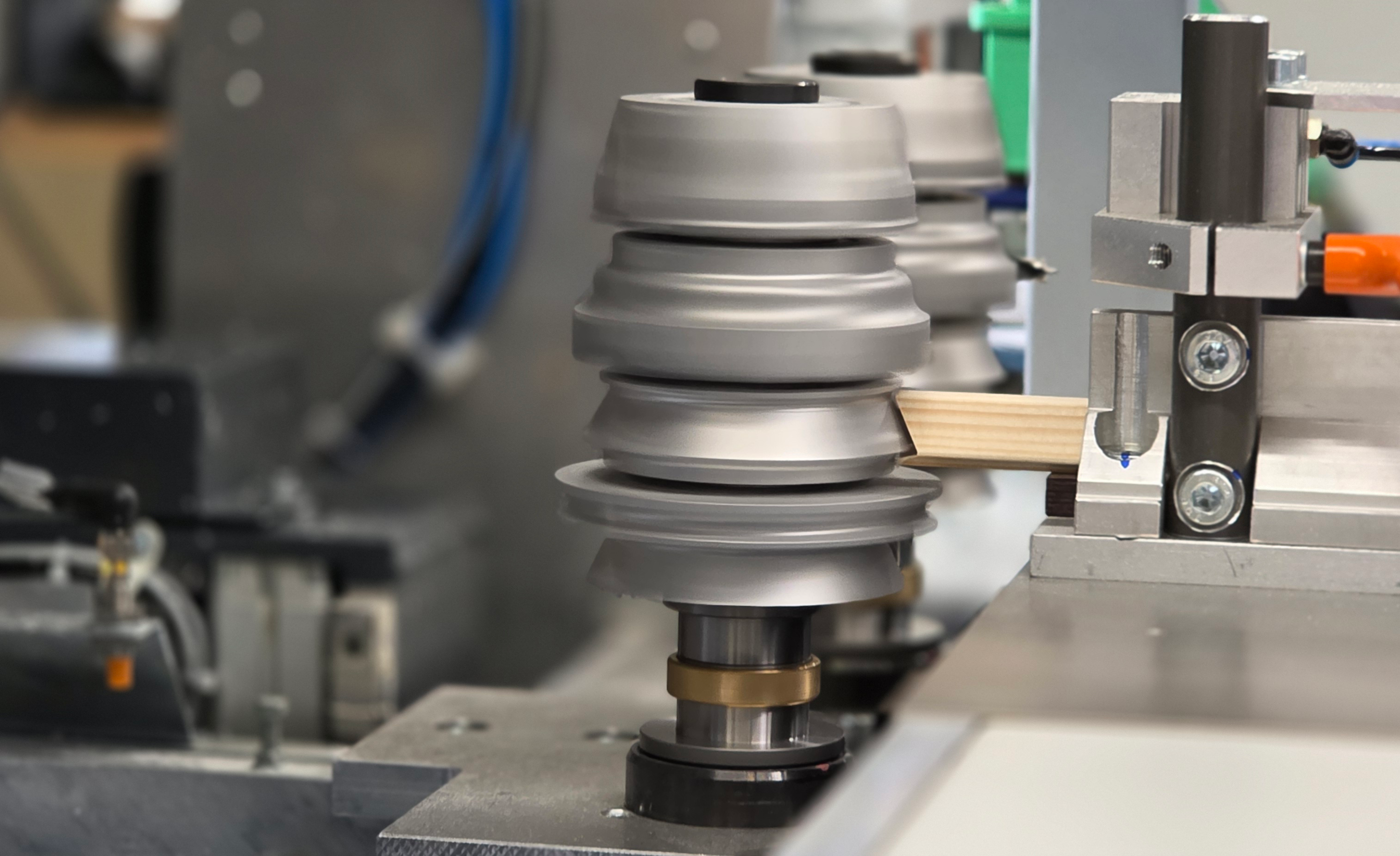 Les pièces sont positionnées à la main, serrées automatiquement après insertion sur simple pression d'un bouton, les croisillons sont fraisés et la pièce est desserrée. Grâce à un agrégat à rainurer avant supplémentaire (le quatrième agrégat), il est possible de fabriquer des croisillons sans éclats sur la face visible à partir de croisillons déjà profilés.