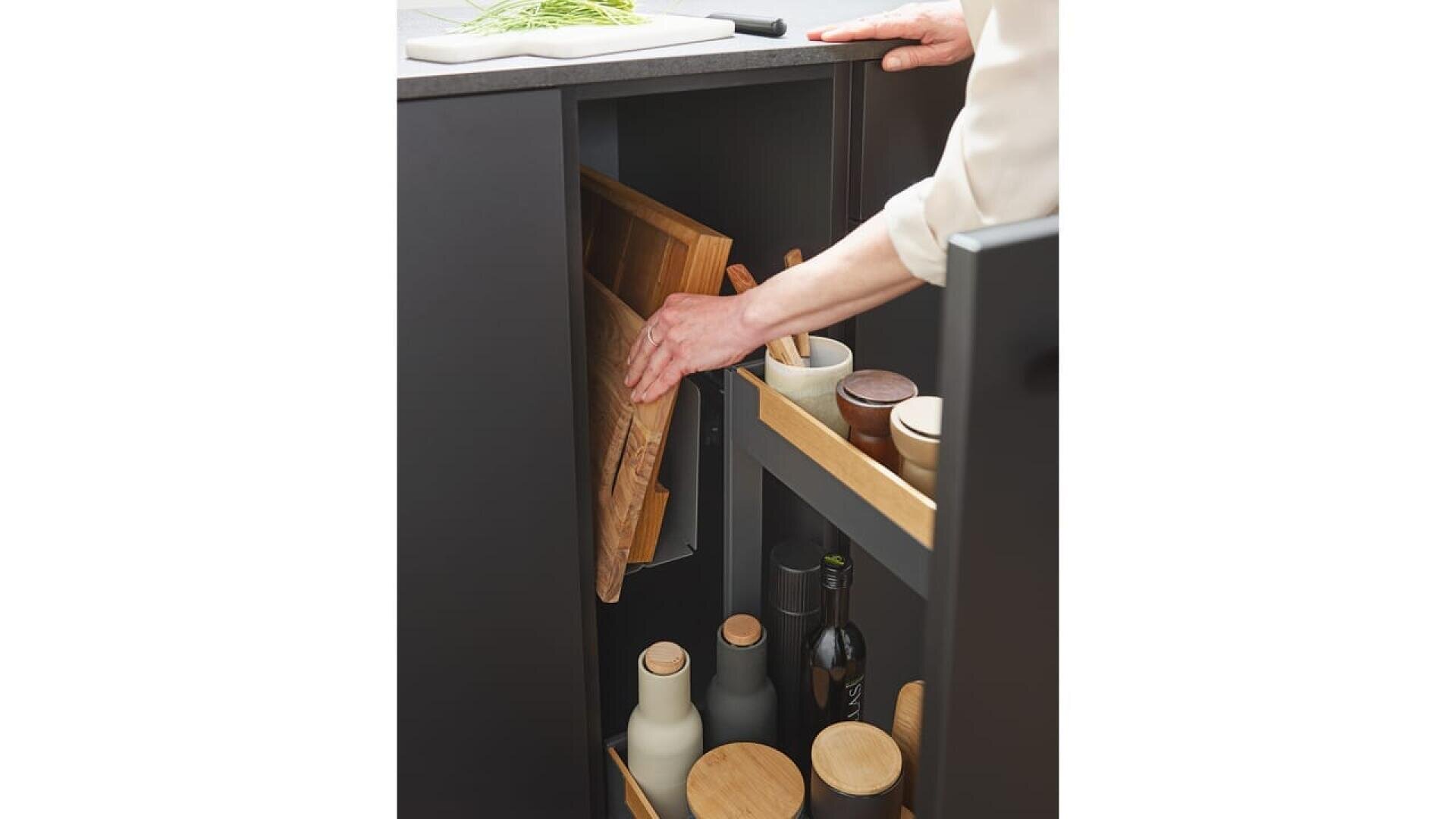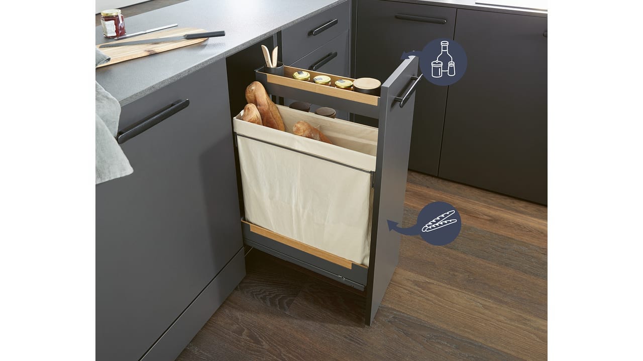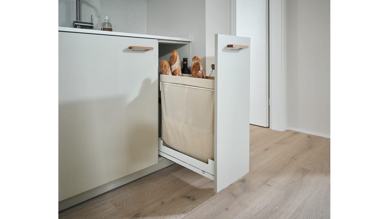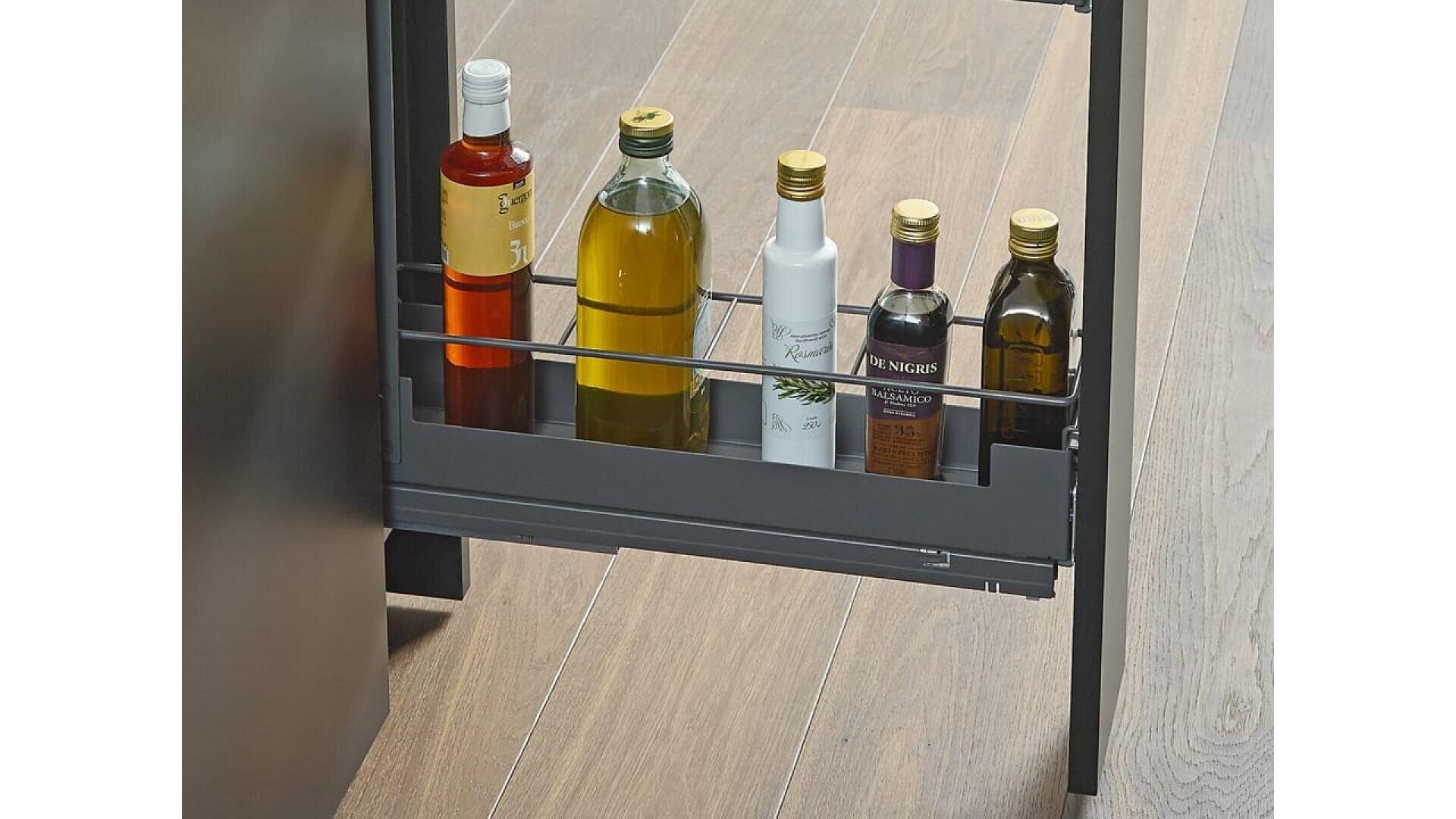 Pinello Spice est une extension pour condiments tout en finesse rentrant dans un élément de 150 mm de large. Conçu pour des largeurs de 200 et 300 mm, Pinello Cargo est le modèle gros format offrant un espace de rangement incroyable. Pinello Towel a été développé comme extension porte-serviettes et Pinello Board comme extension permettant d’accéder facilement aux planches et plaques. Pinello Bread constitue l’extension à pain pour toute la famille. Enfin, une extension intérieure pure est aussi vendue avec Pinello Inside.