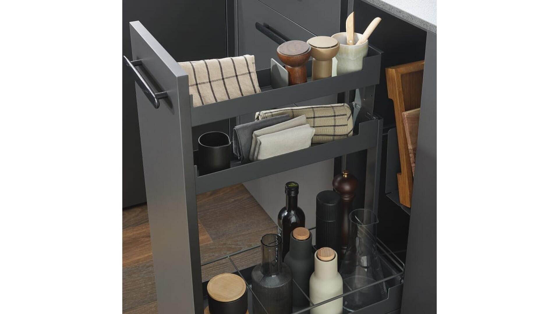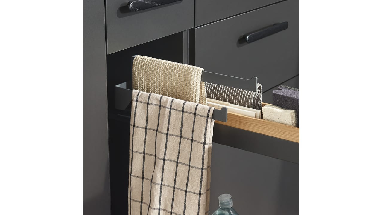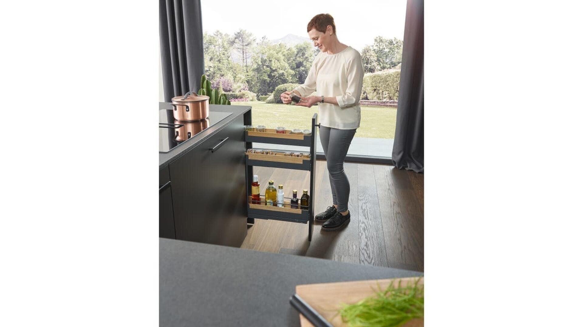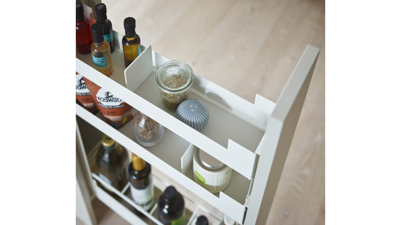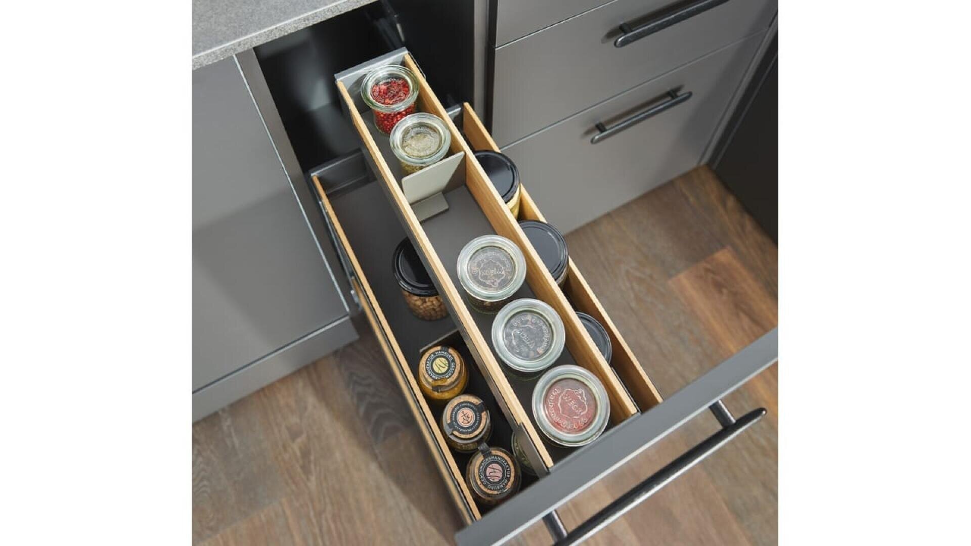 Pinello Spice est une extension pour condiments tout en finesse rentrant dans un élément de 150 mm de large. Conçu pour des largeurs de 200 et 300 mm, Pinello Cargo est le modèle gros format offrant un espace de rangement incroyable. Pinello Towel a été développé comme extension porte-serviettes et Pinello Board comme extension permettant d’accéder facilement aux planches et plaques. Pinello Bread constitue l’extension à pain pour toute la famille. Enfin, une extension intérieure pure est aussi vendue avec Pinello Inside.