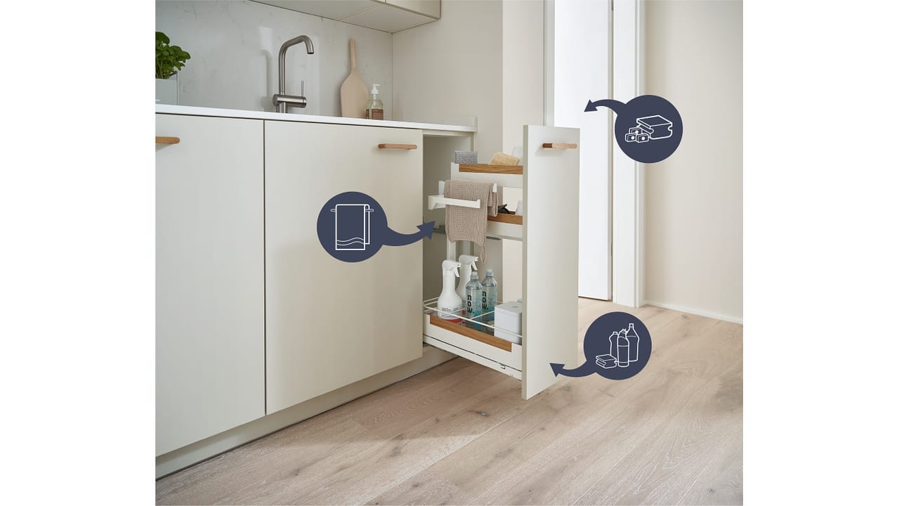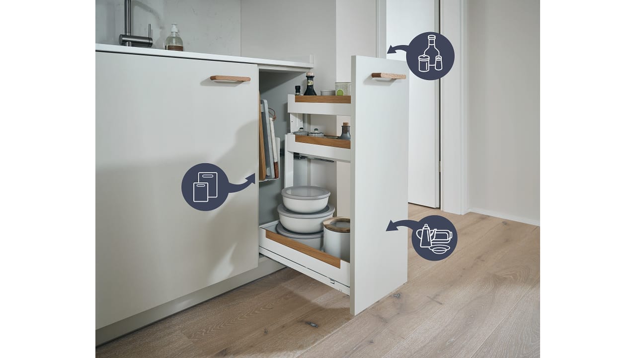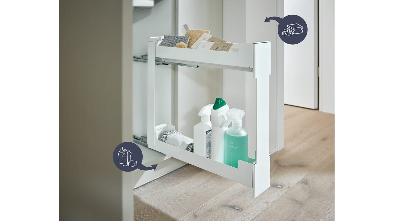 Couvrir de nombreuses applications avec un nombre réduit d’articles. C’est la philosophie de la nouvelle famille d’extensions pour armoires basses de peka. Les spécialistes du traitement du métal et professionnels de l’espace de rangement du groupe ont réussi à concevoir un système intelligent.